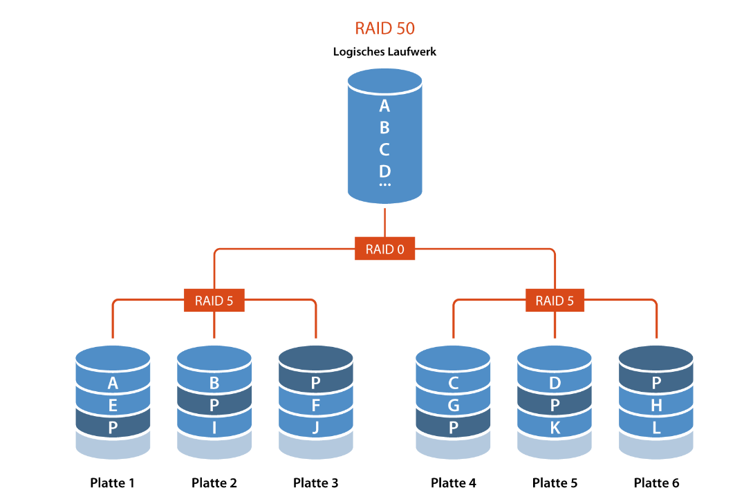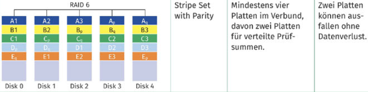 - Nutzungskapazität: Gesamtkapazität - Kapazität einer Festplatte