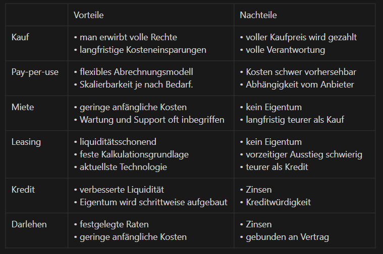 - Vor- und Nachteile Von Kauf, Miete, Leasing, Pay-per-use, Kredit und Darlehen